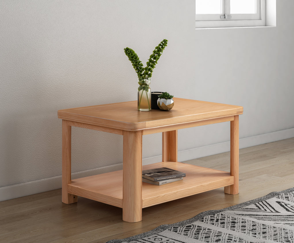 Manufactured in oak and characterized by its curved edges, classic moulding and natural finish: this range is an elegant addition to any room.