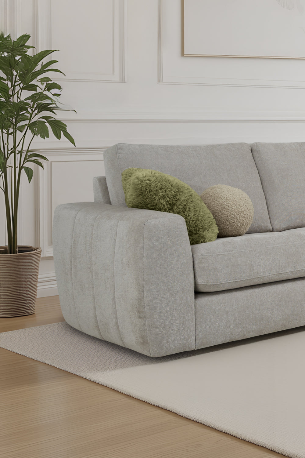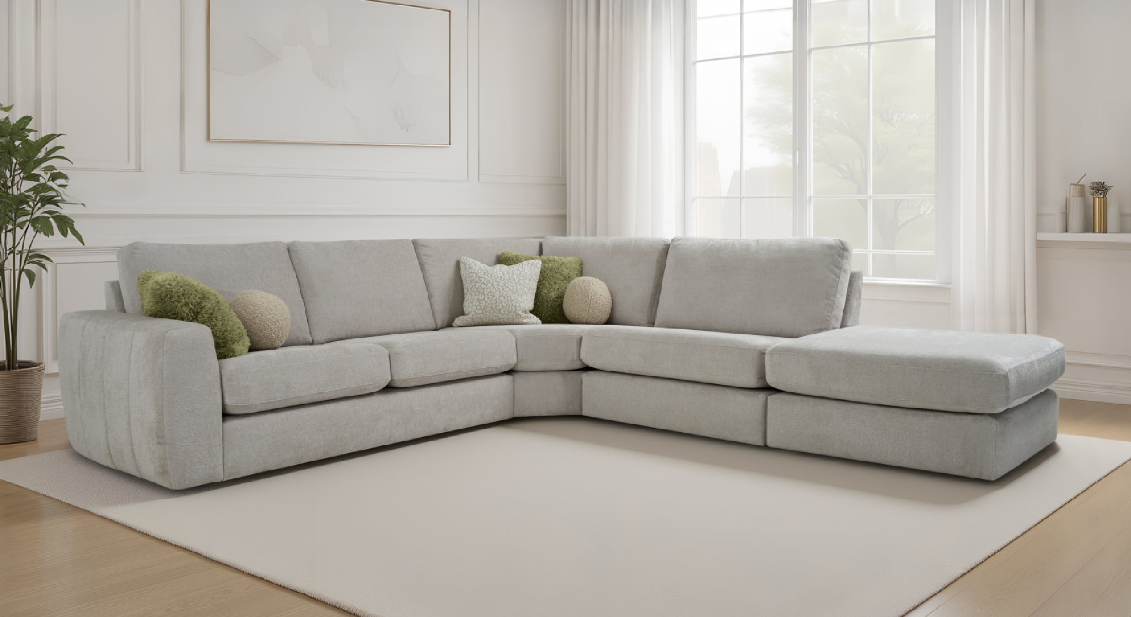 Modern and inviting, this sectional sofa blends comfort with timeless style. It's soft fabric and clean lines create a serene centerpiece that elevates any living space.