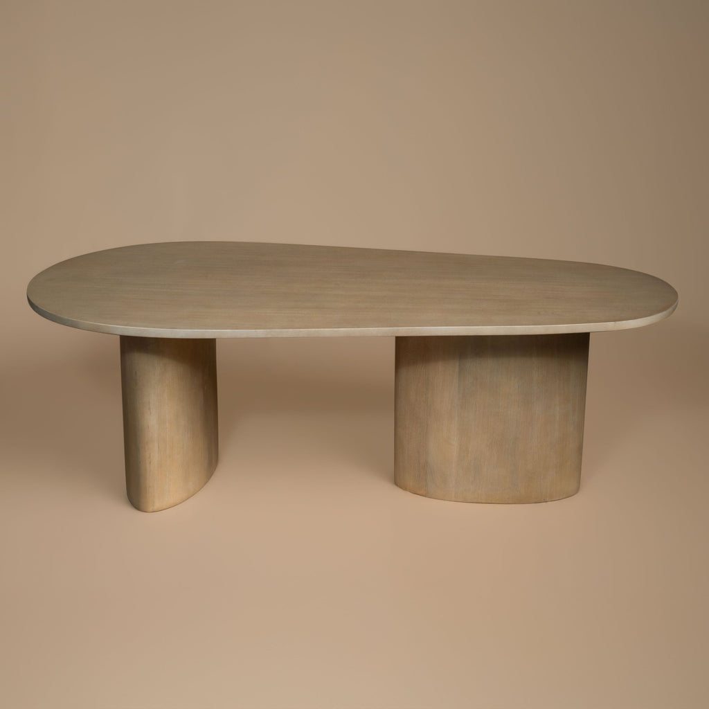 Brand new accent furniture consisting of lamp table and coffee table. This design consists of juxtapose wide, oval shaped legs supporting an organic shaped tabletop. All warm wood finish.
